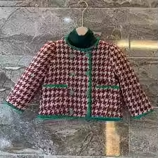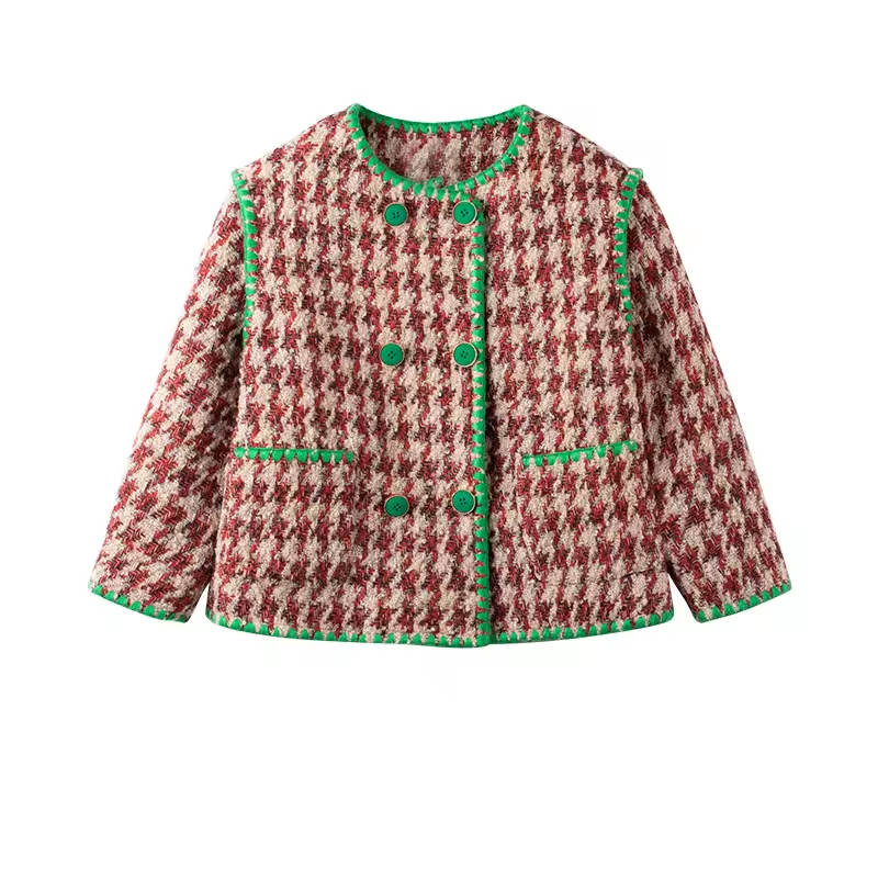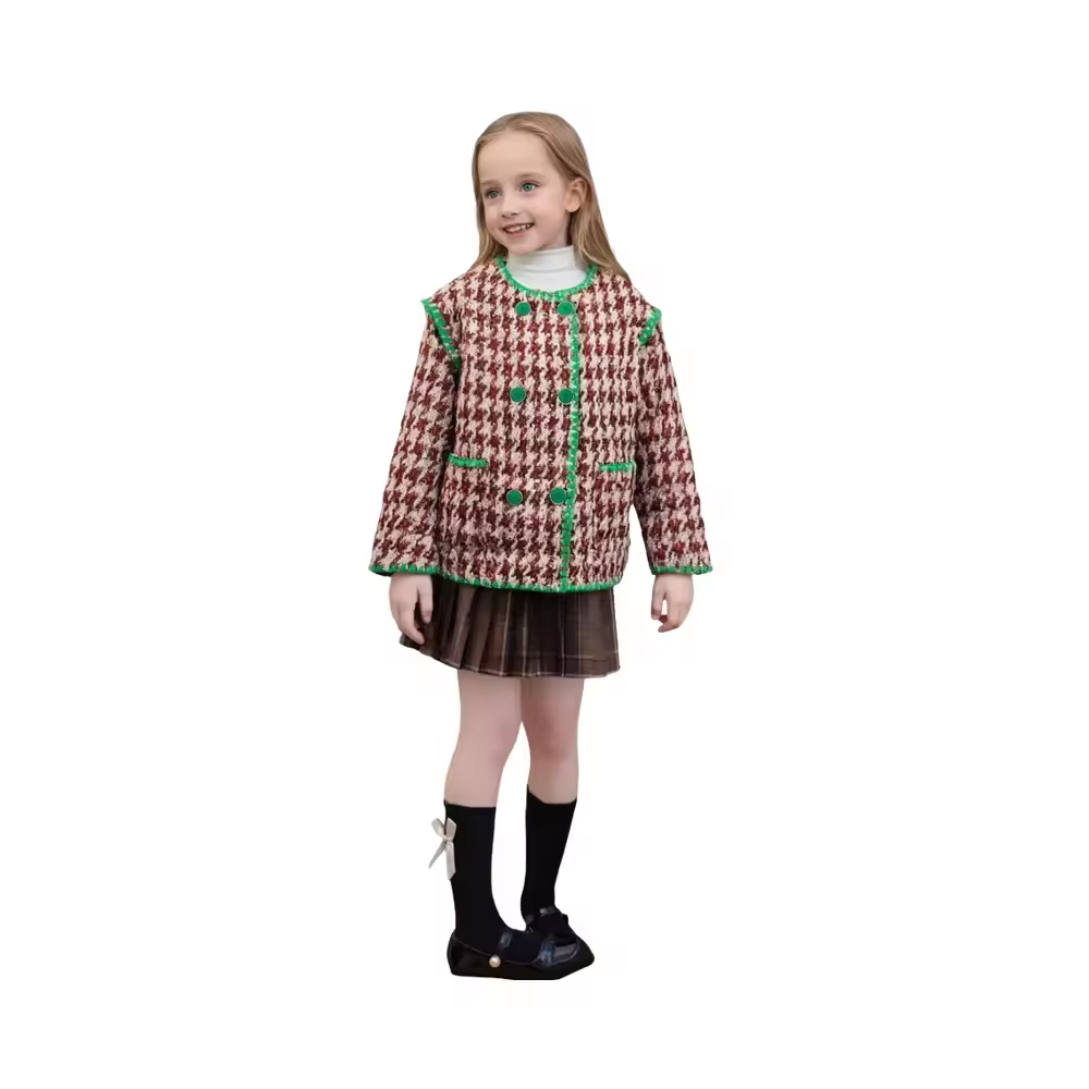 Kids Girls Tweed Jacket Round Collar Long Sleeves Casual Style Design