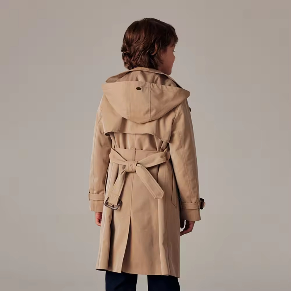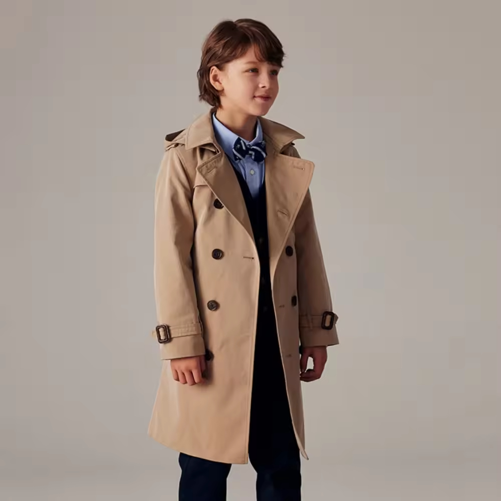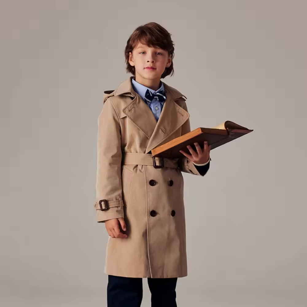 OEM or ODM Classical Style Double-Breasted Belted Long Trench Coat for Toddler Girls Factory Direct Fall Kids Coats