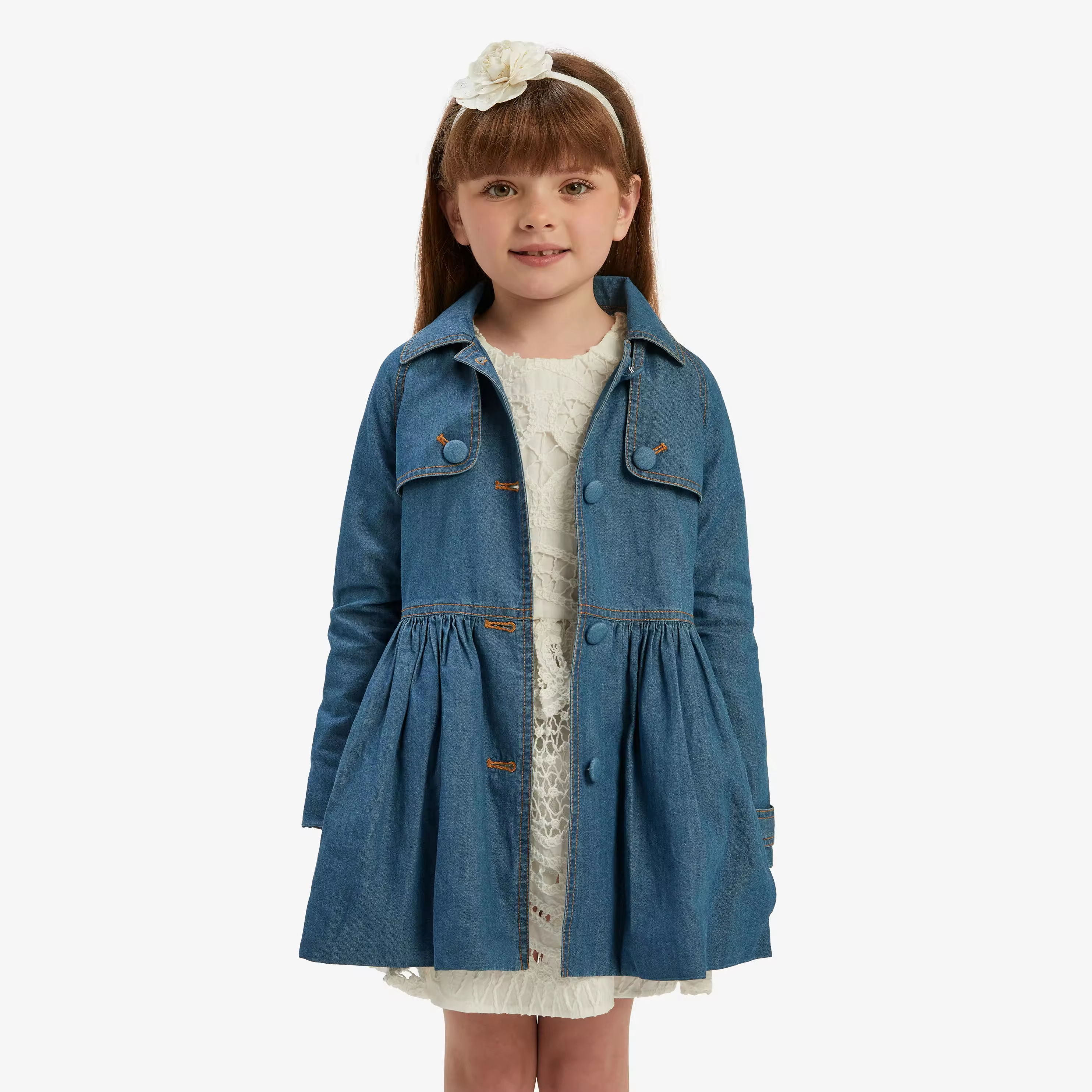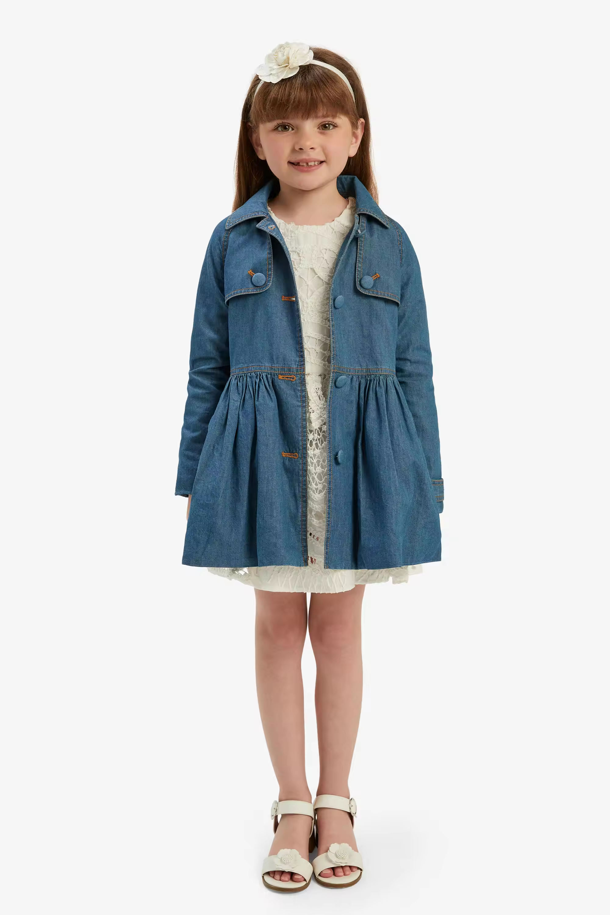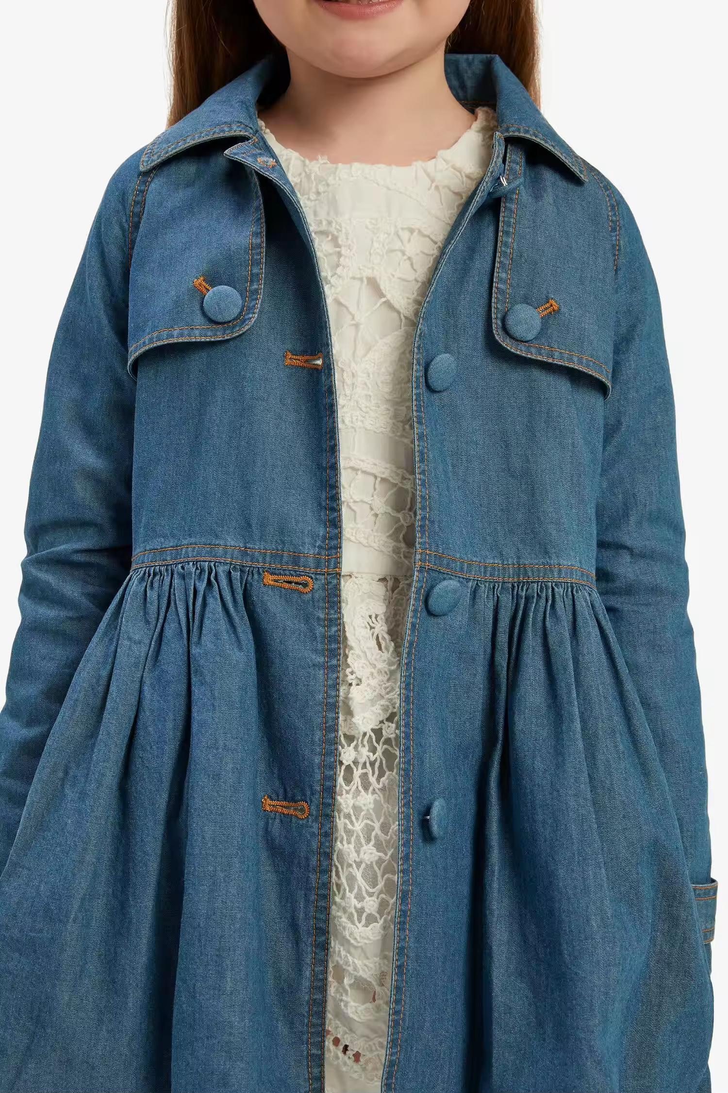 Custom Brand Classical Style Denim Trench Coat for Kids Girls Winter Fall Outerwear & Coats