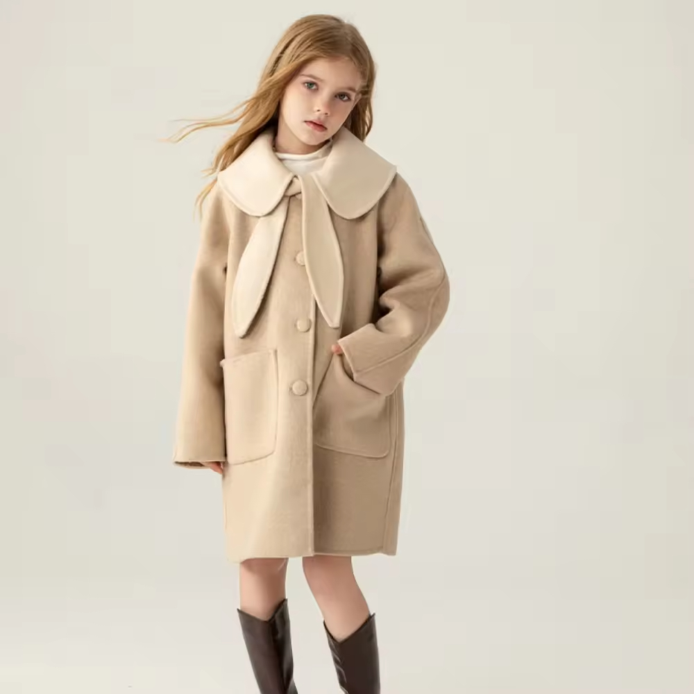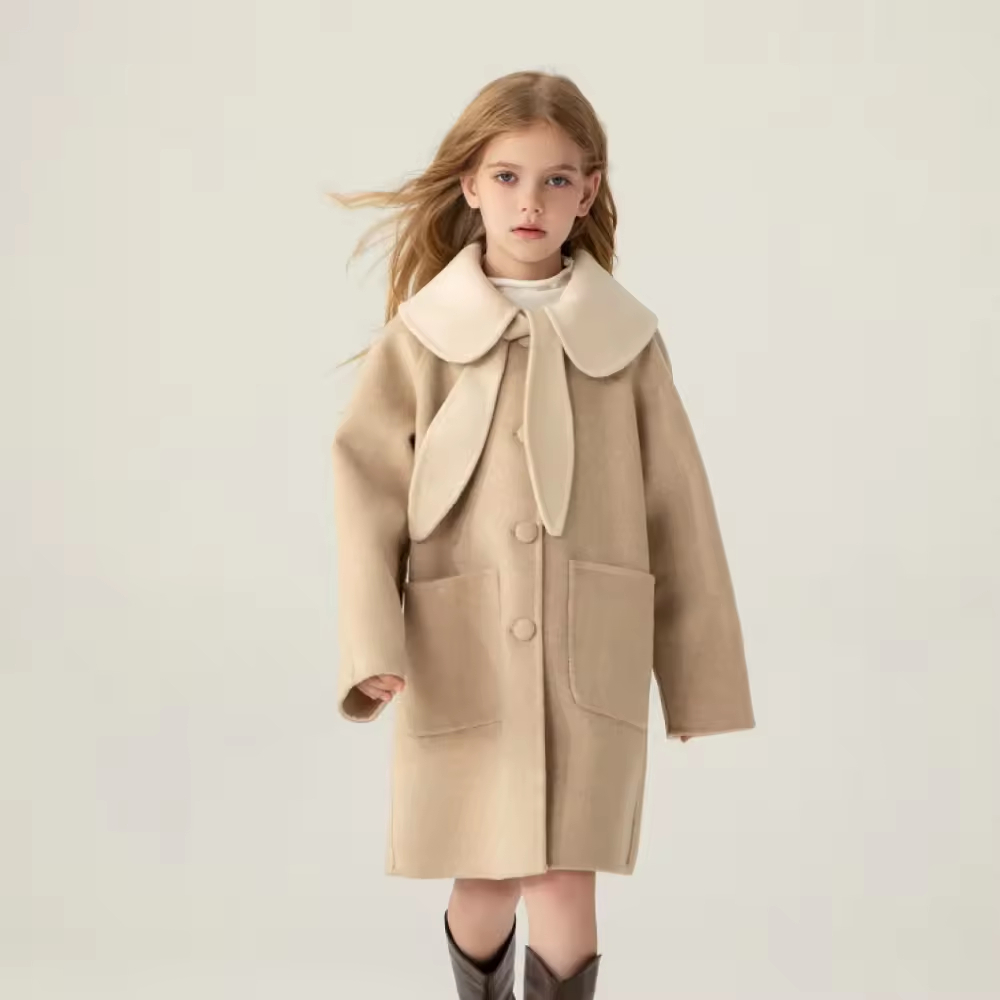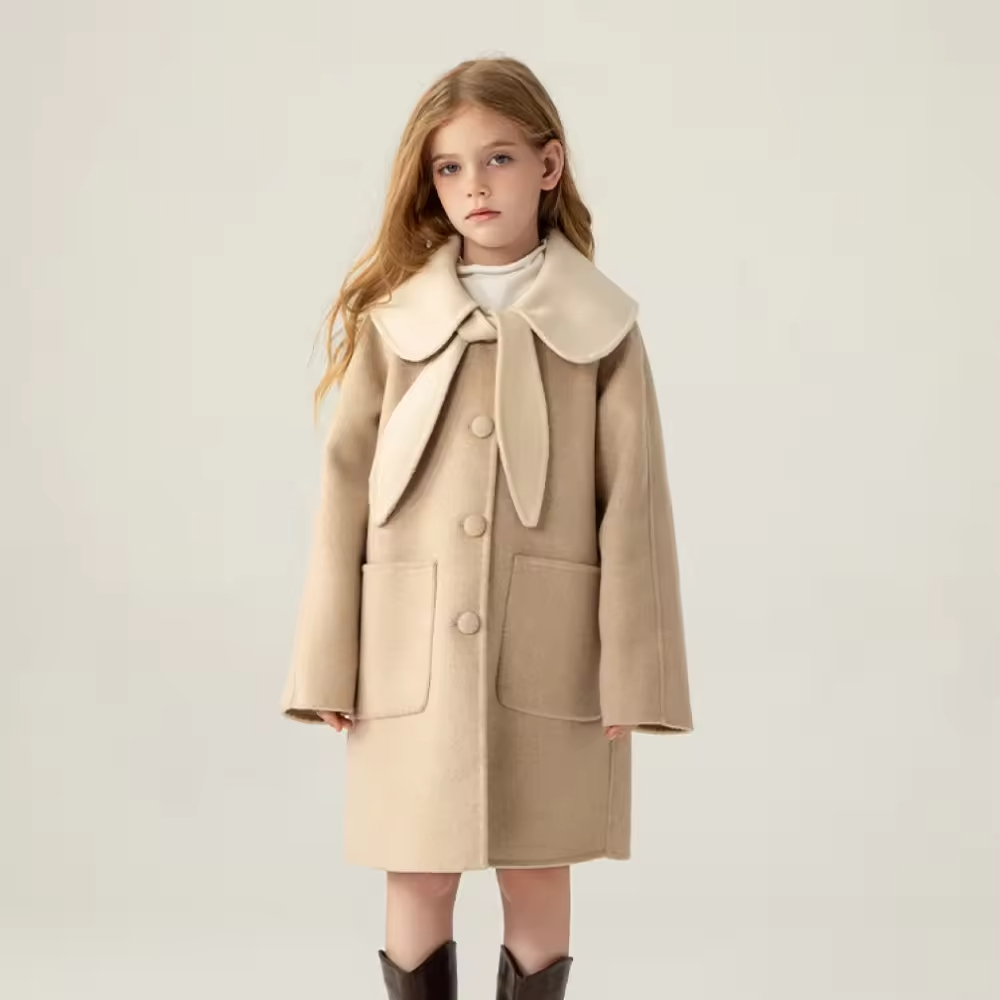 Autumn Girls Coat with Bow Knot and Hem Button Closure Type for Girls outerwear