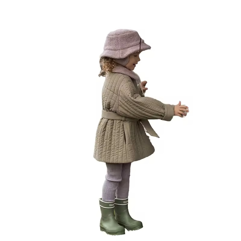 2025 Designer Children Jacket Girls Winter Cotton Padded Lamb Collar Kids Coats With Waistbelt