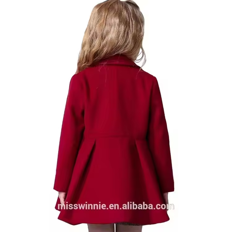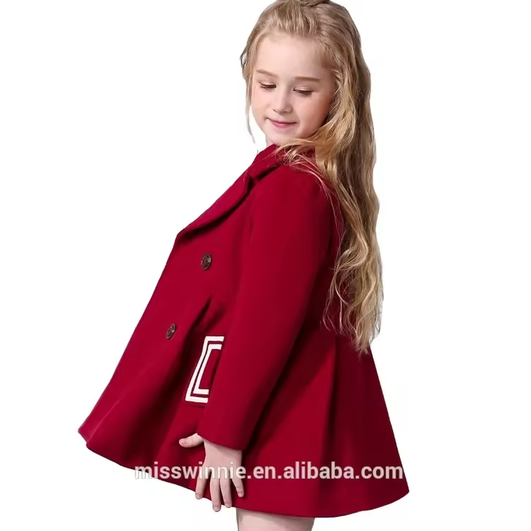 Customized Private Label Brand Wool Kids Winter Coat Girl Coats With Embroidery on Collar