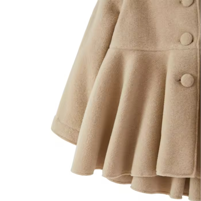 /Hot Sale Children Winter Ruffles Bottom Woolen Coat Girls Warm Clothing Kids Fashion Fall Winter Wool Coats