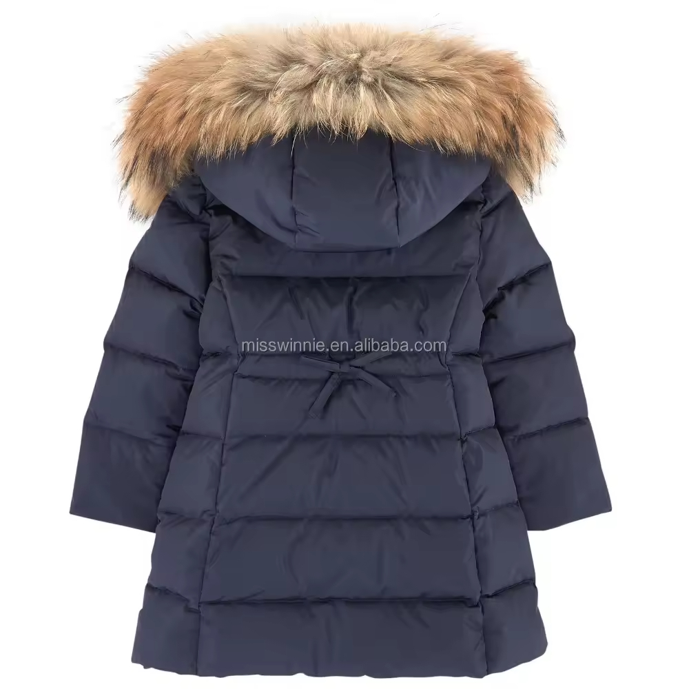 OEM New Design Children Girl Down Jackets With Hooded Pure Pattern With Flower Applique Pocket Casual Style Down Coat