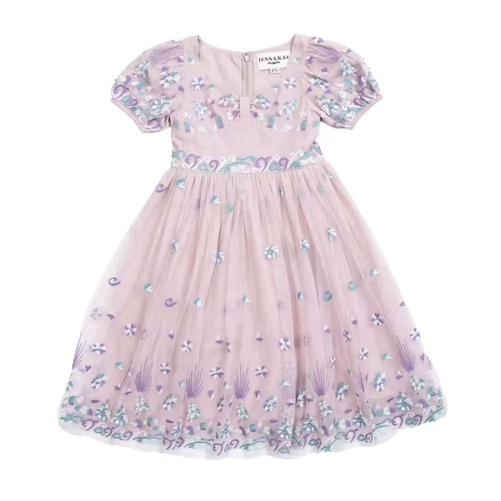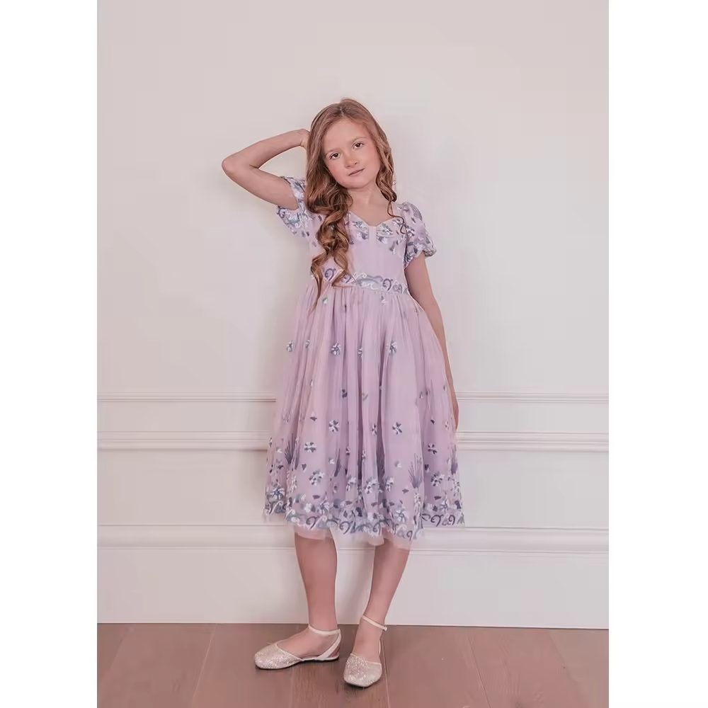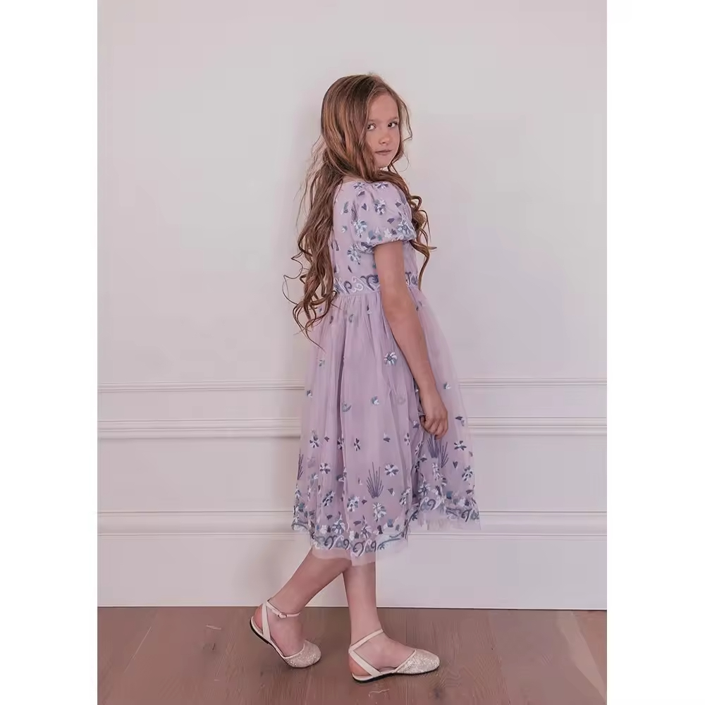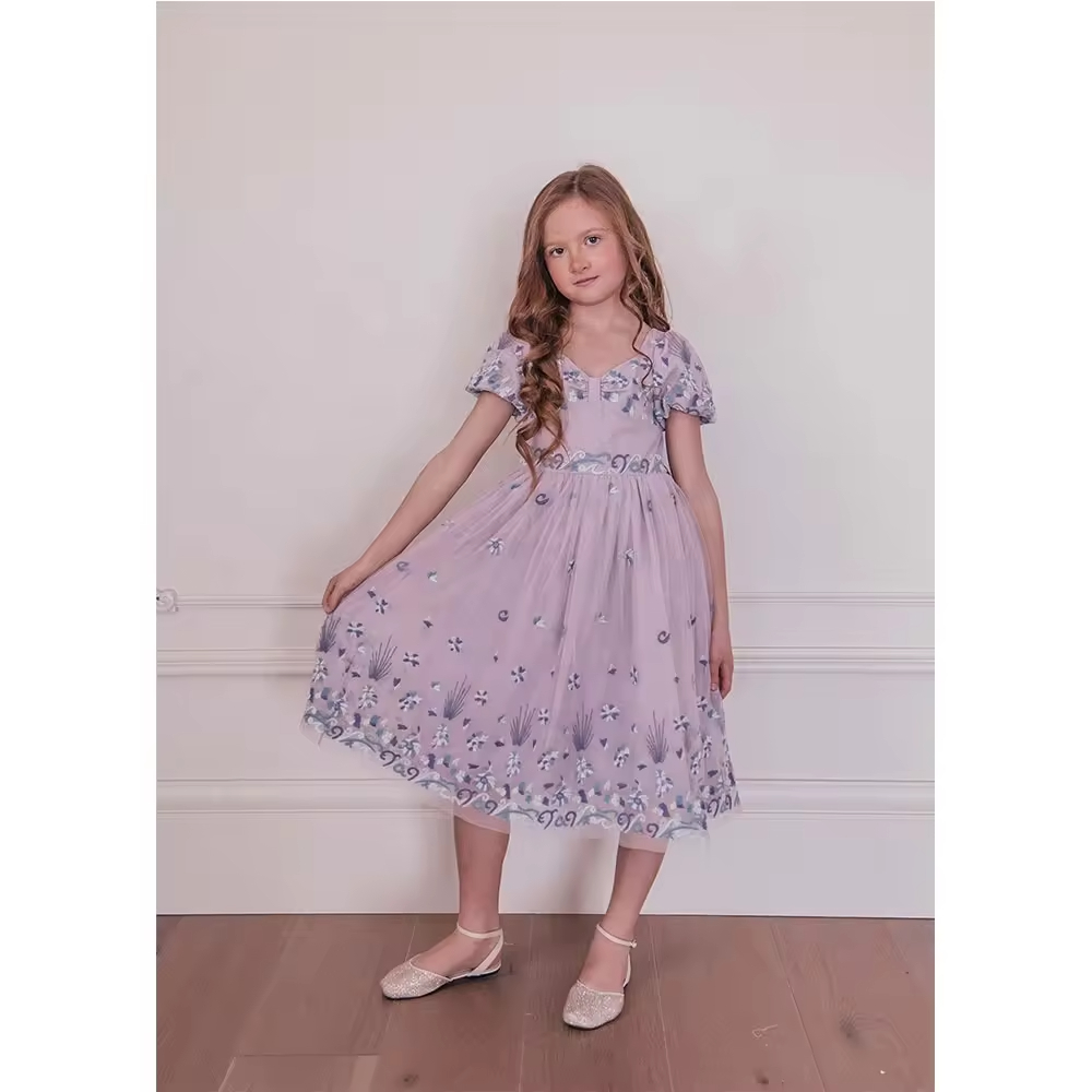 2024 New Arrival pink Lace Children Girls Dresses With Hand Embroidery Boutique Baby Girl Dress Kids Clothing Factory