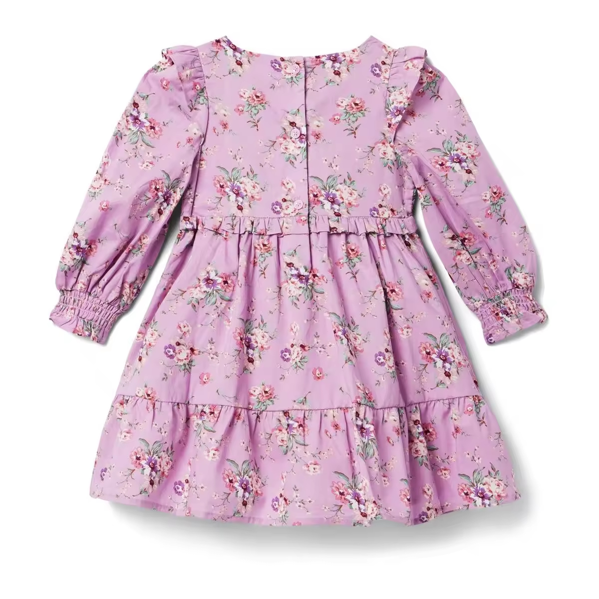 Custom 2024 New Arrival Purple Smocked Children Cute Baby Girls Dresses With Flower Printed Kids Clothing Factory