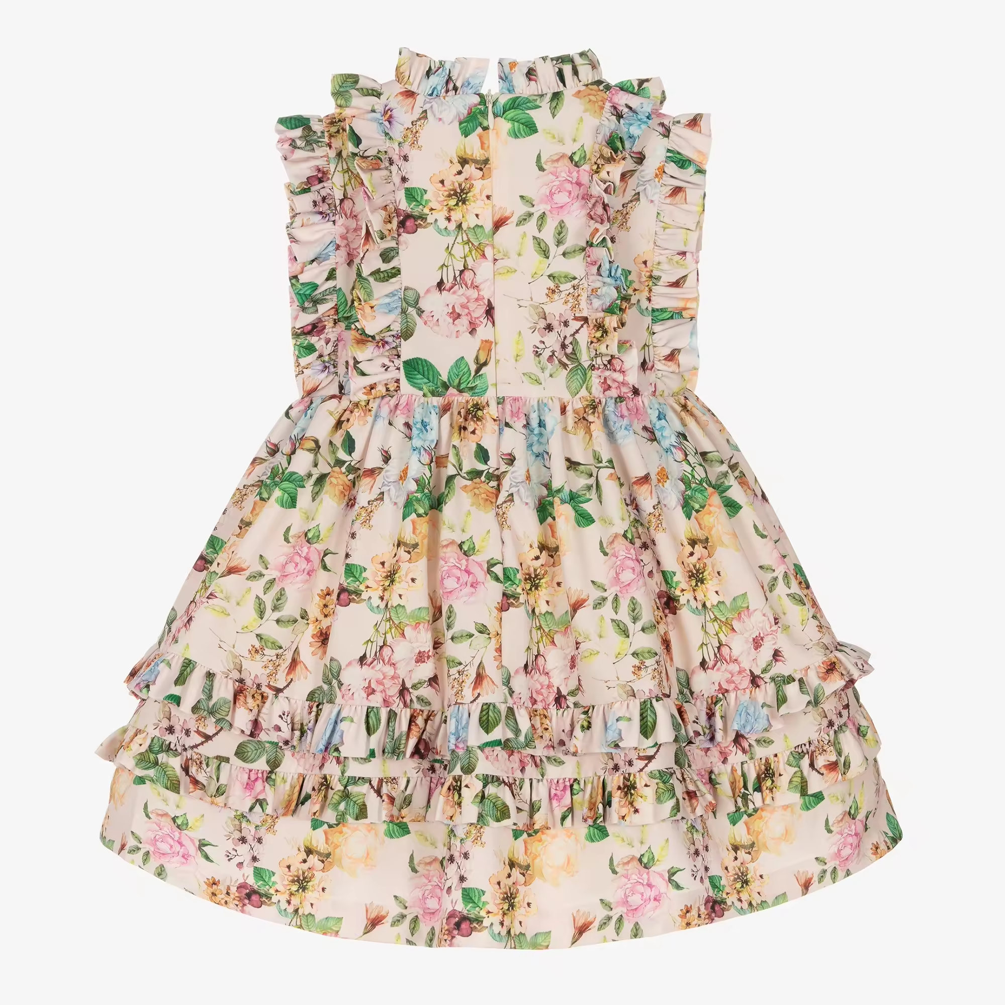2025 New Fashion Vintage Flower Print Baby Girls Dresses for Kids Sleeveless Summer Boutique Dress Spanish Style