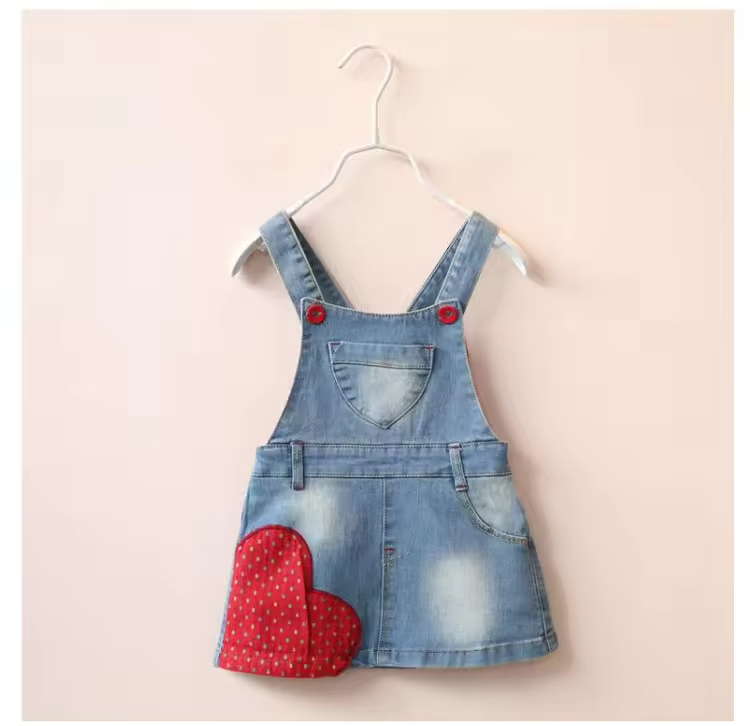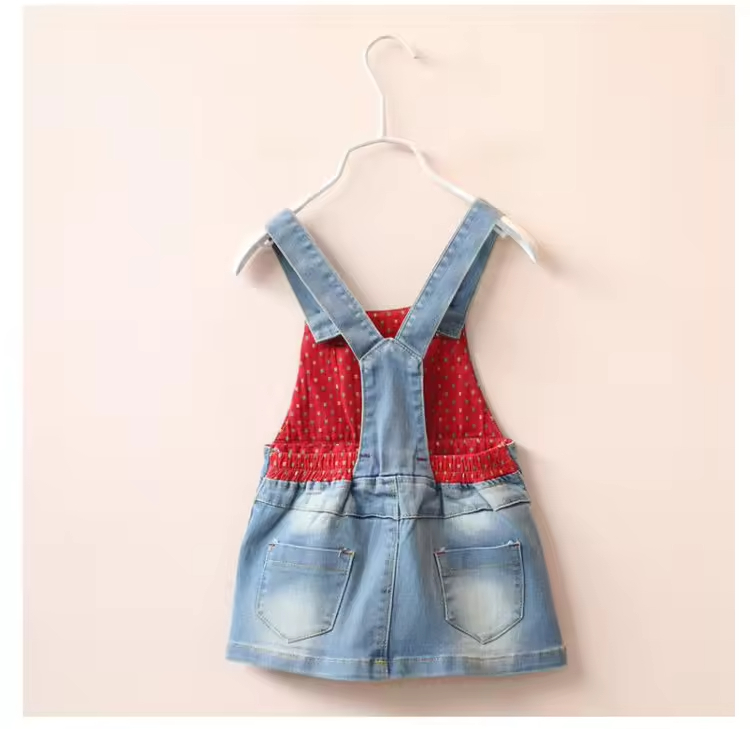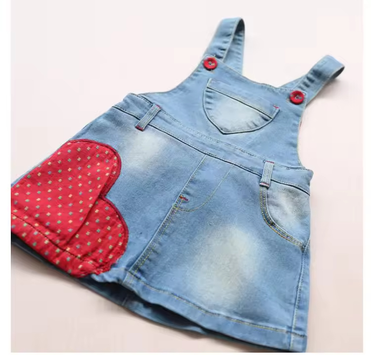 High Quality Kids Jeans Dress with Embroidered Applique Light Wash Wholesale for Girls Clothes