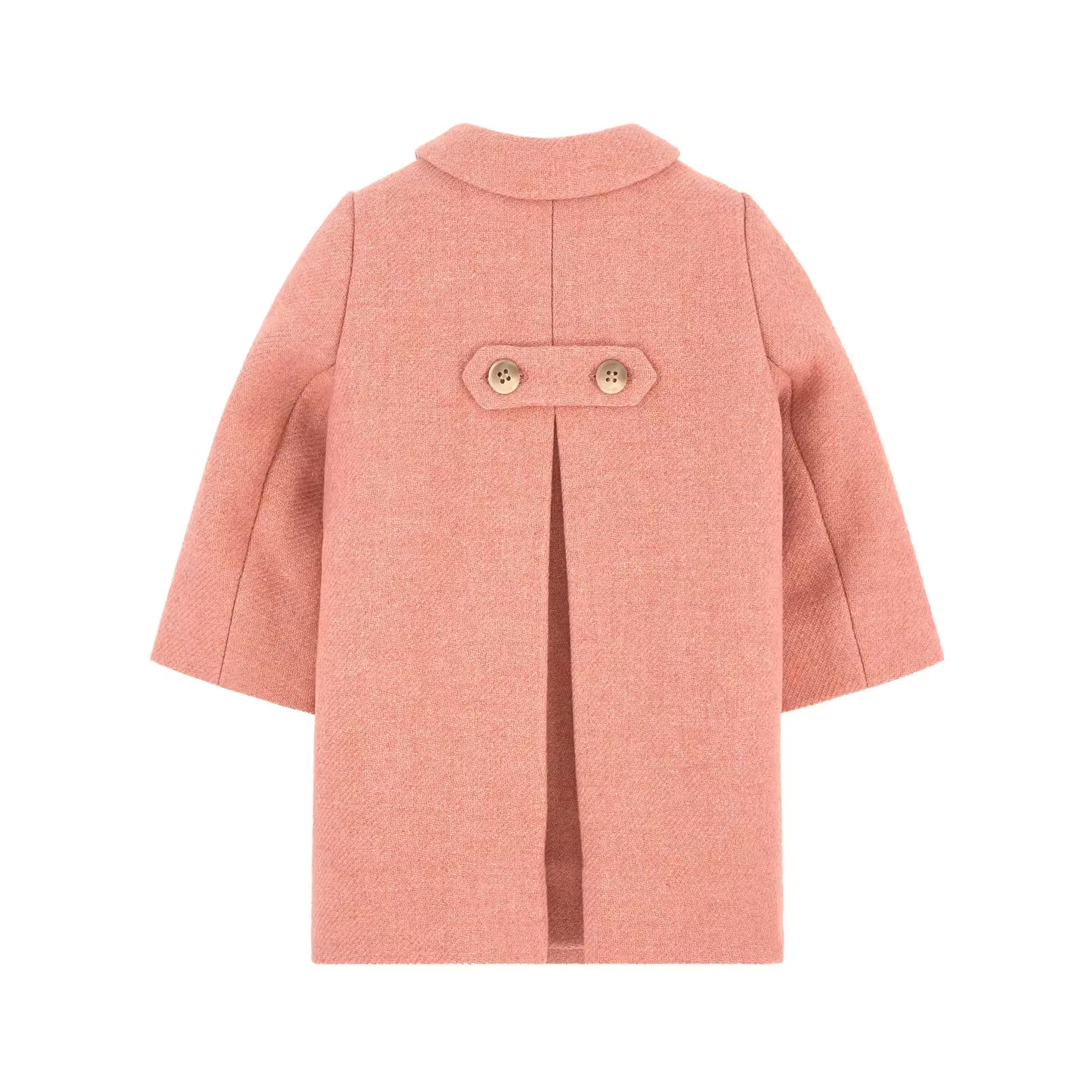 European style 2025 winter girls long-sleeves long top kids wear elegant style pink color woolen coat baby coats