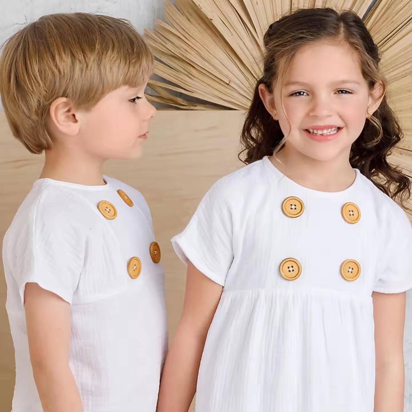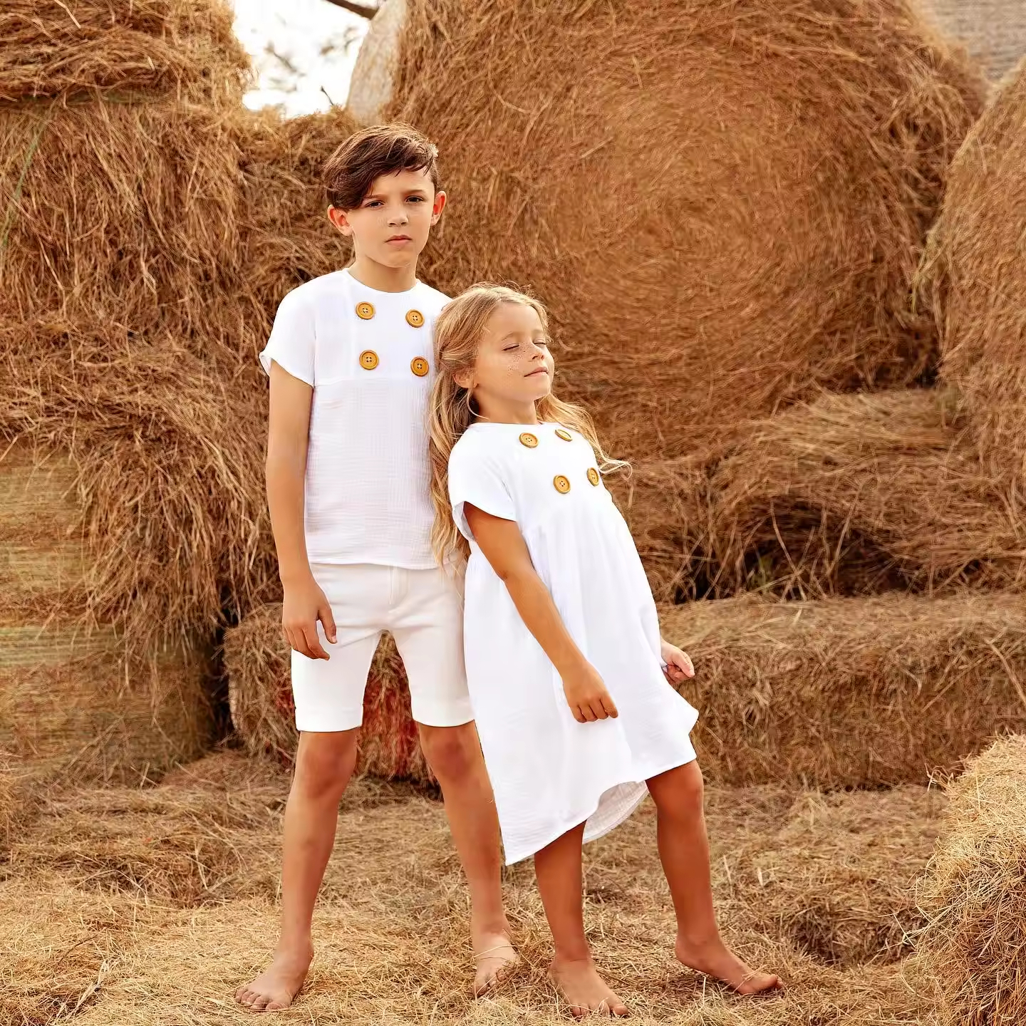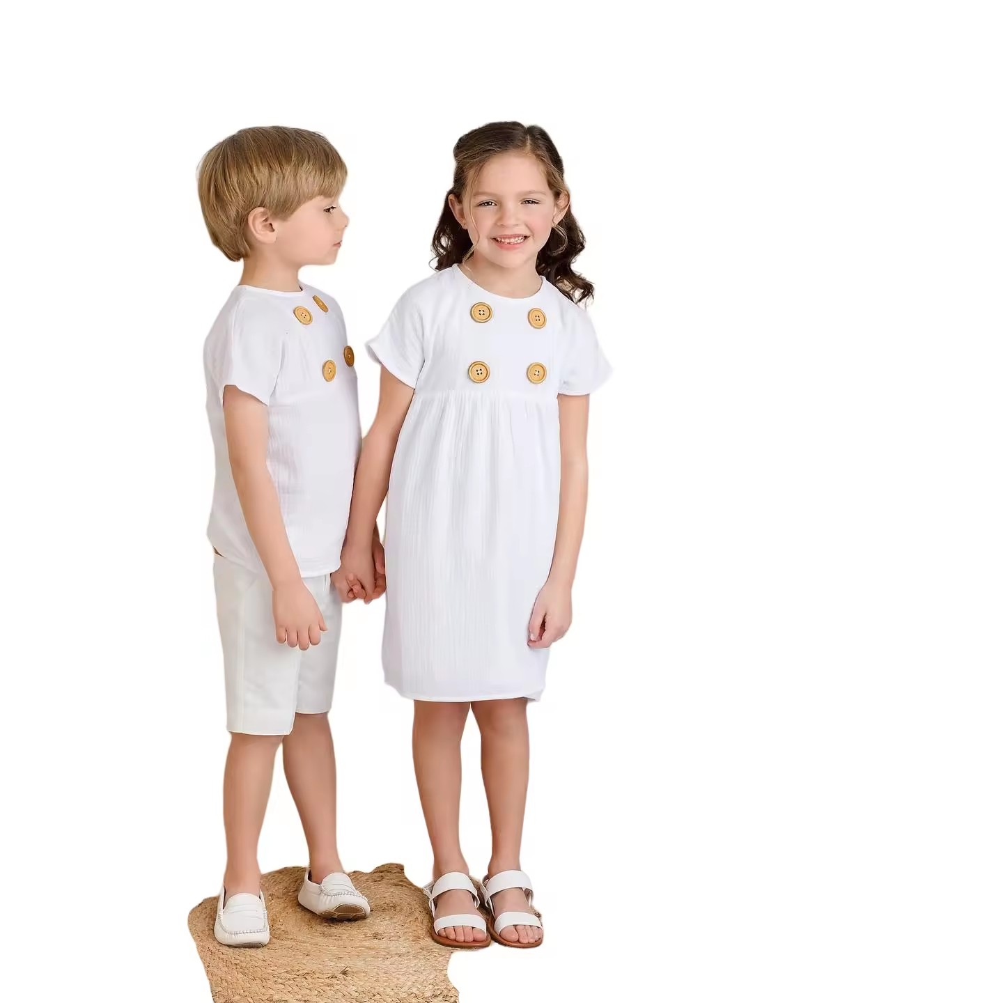 ODM Toddler Kids Boys Girls Clothing Muslin Girls Short Casual Dress Matching Kids Shirt Tops Brother Sister Children Clothing