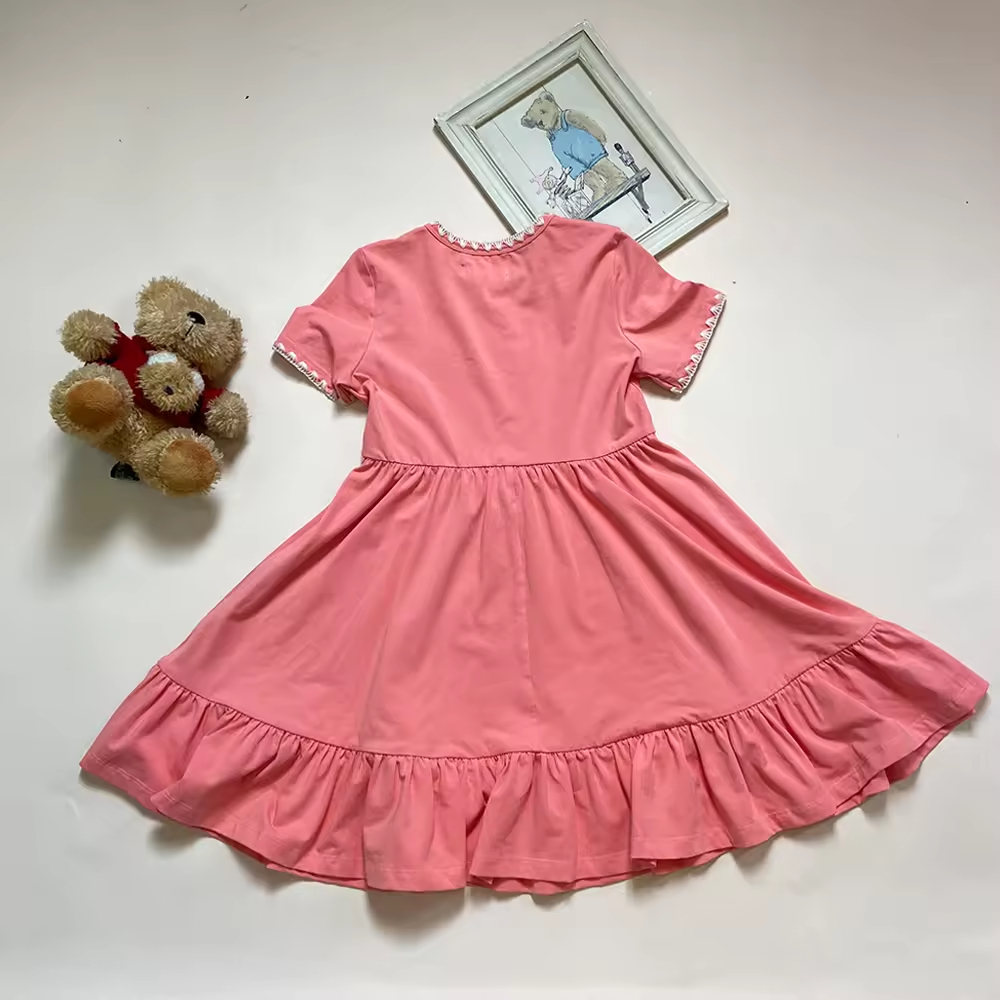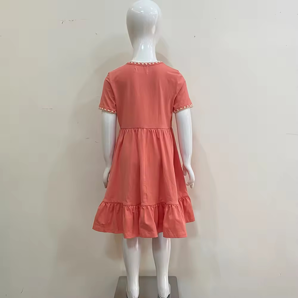 Short Sleeve Cotton Dress for Seven-Year-Old Girls Frocks for Children