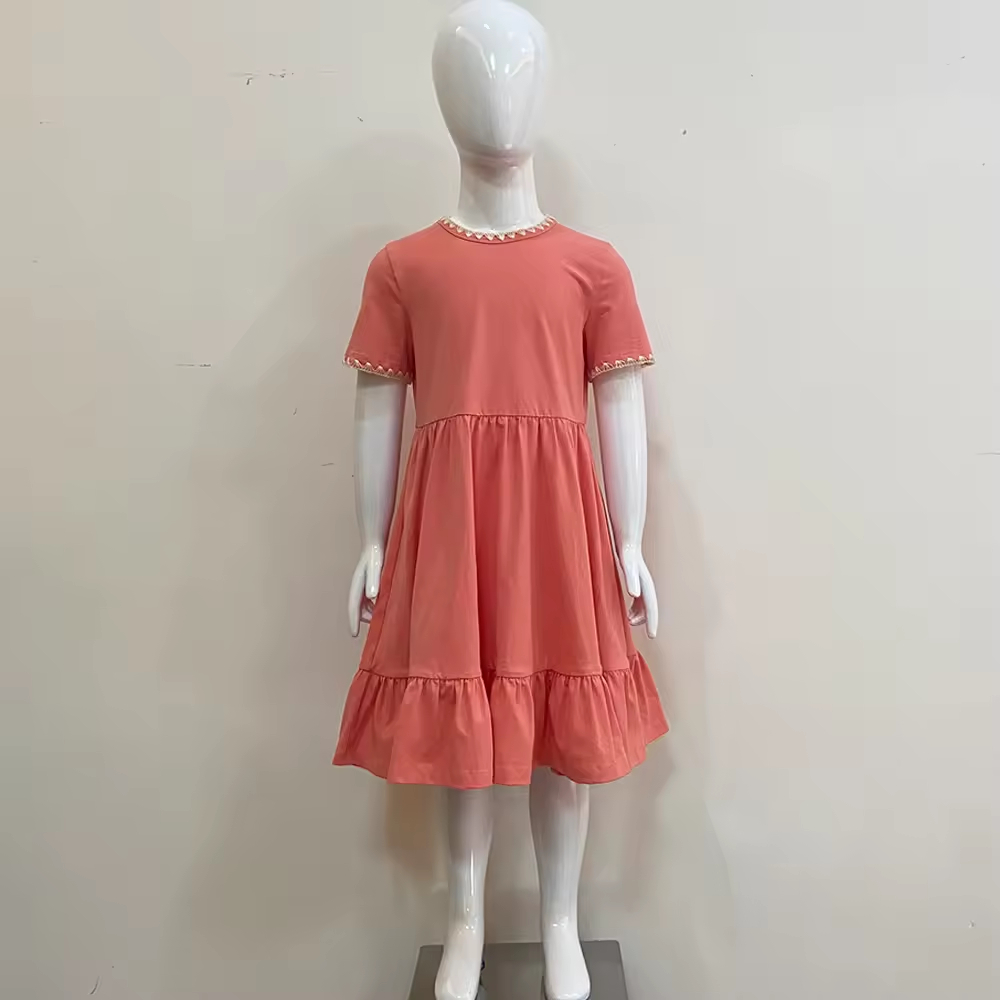 Guangzhou Brand New Design Girls Dress Summer Cotton Polyester Blend Crepe Solid Pattern Baby Dresses for Children