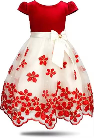 Hot Sell Kids Clothes Short Sleeves Baby Girl Dress for Christmas With White and Red Fabric and Snowflake