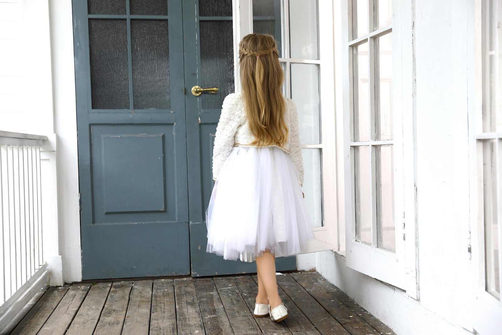 1.Girls Dress in White/black color, quality cotton fabric and a vintage style.