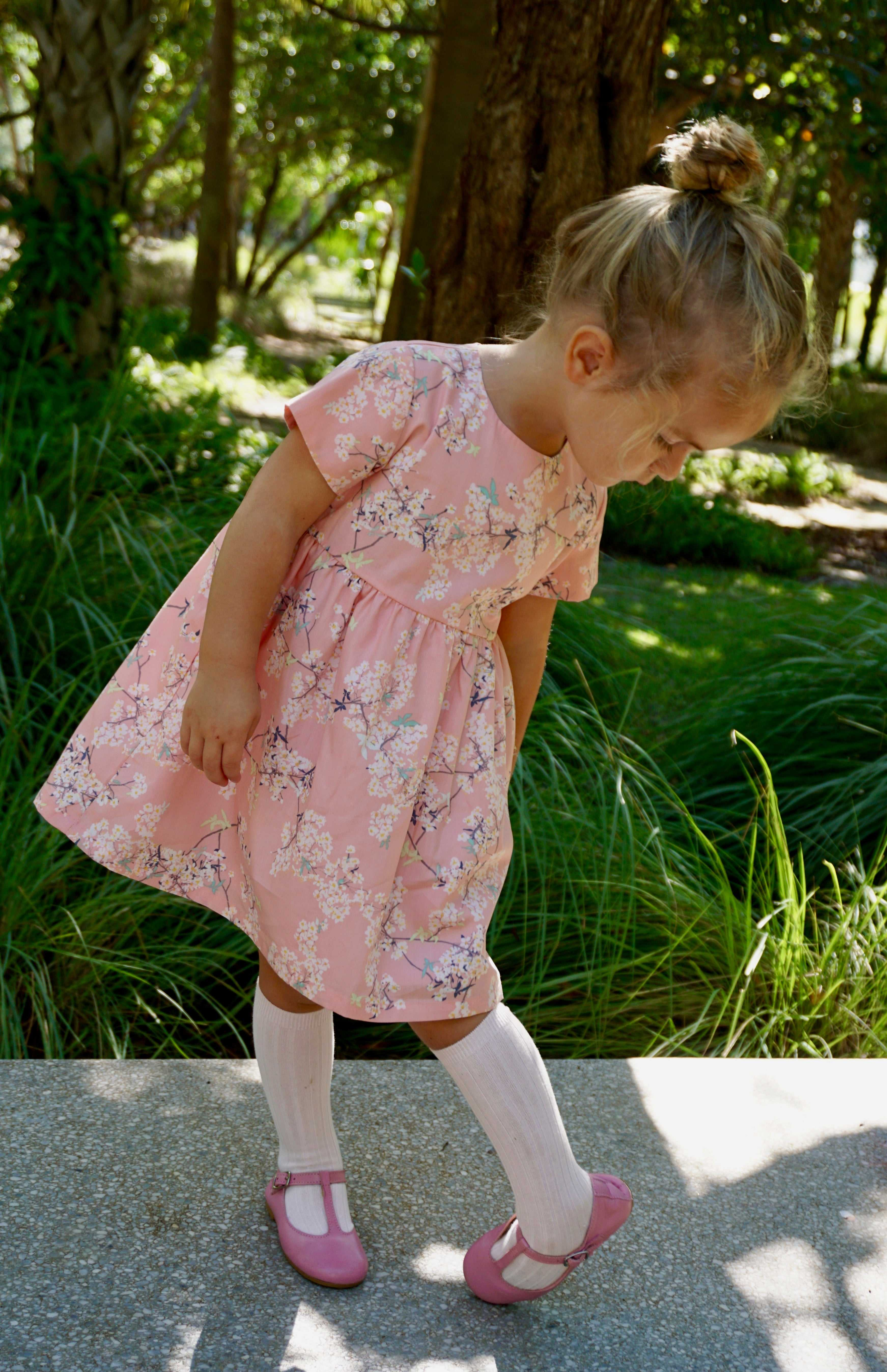 Custom Dusty pink Floral Kids Girl Child Dresses for Girls Short Sleeve Summer Collection Cotton Baby Toddler Dresses Factory