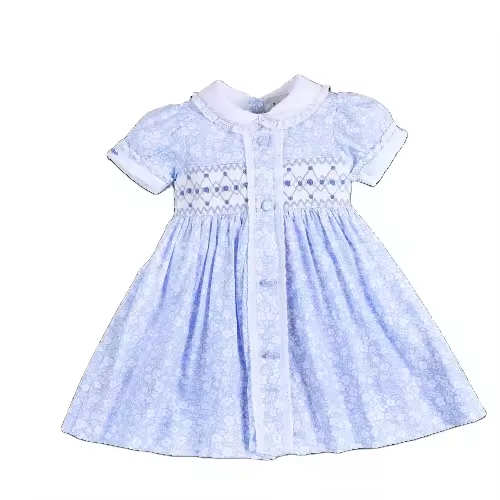 Custom Summer Cotton Embroidery Dresses for Toddlers Dusty Blue With Ruffle Sleeves Toddler Girls Clothing