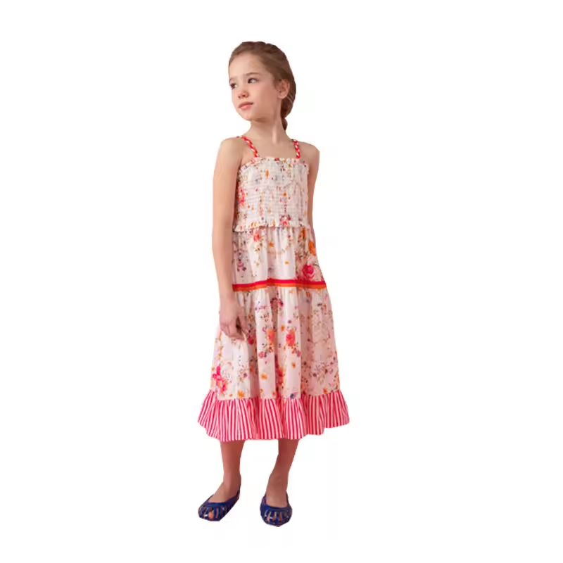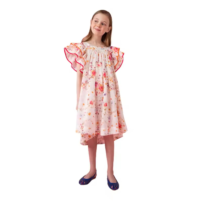 Clothing Manufacturers Custom Kids Clothing Girls Casual Floral Dresses Ruffle Cuffs Summer Dresses for Girls