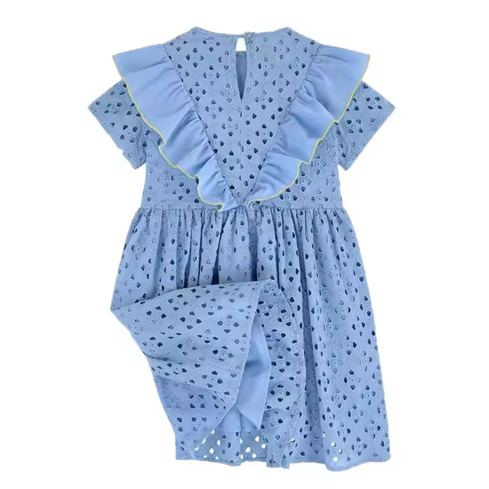 OEM&ODM New Arrival Fashion Design Jacquard Fabric Cotton Light Blue Ruffles Girl Dress Kid Frock for Girls