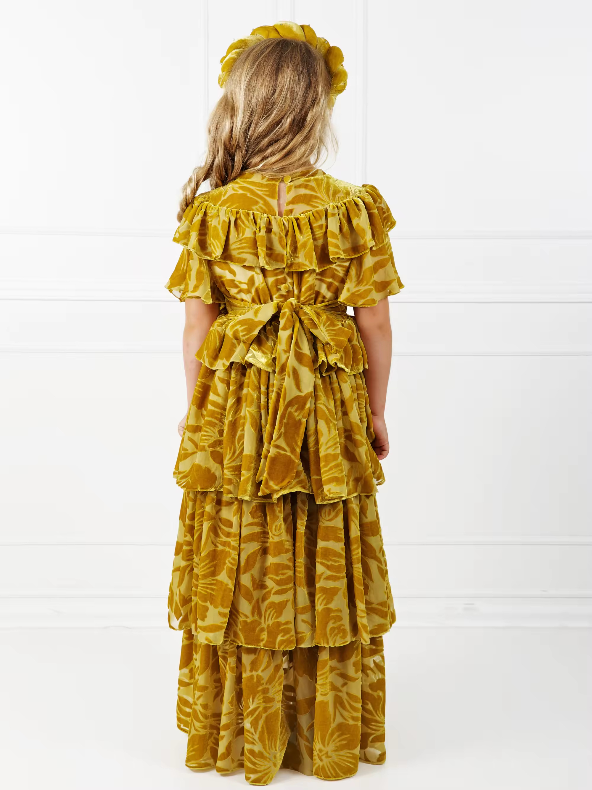 /Customized Elegant Robe Children Maxi Dress for Girls Toddler's Tiered Flowy Cut ODM Summer Dress for 6 to 14 Years
