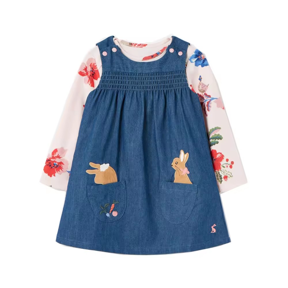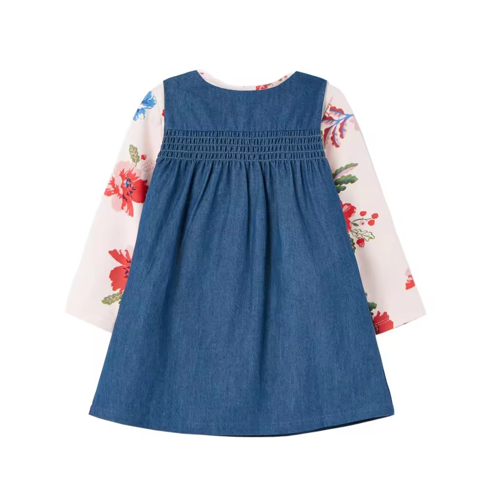 /Denim Tank Dress Fake 2 pcs Long sleeves Dress Smocking With Embroidery For Kids Girls 6-10 y Manufacturing