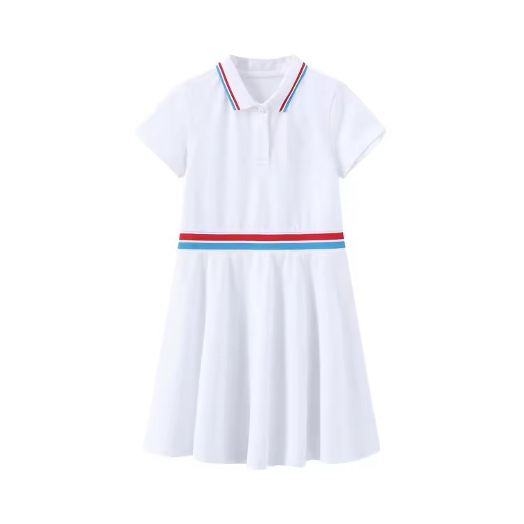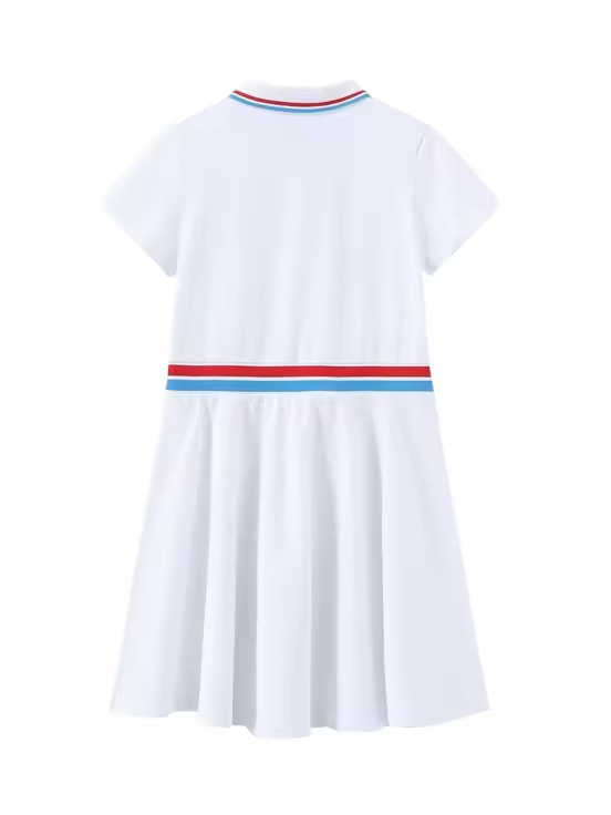 Little Girls Fashion Style High Quality Custom Polo Shirt Dress White Stripe Pleated Design