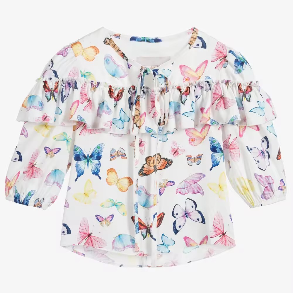 Individual dress style Customized children clothes fancy printing Ruffle girls dress