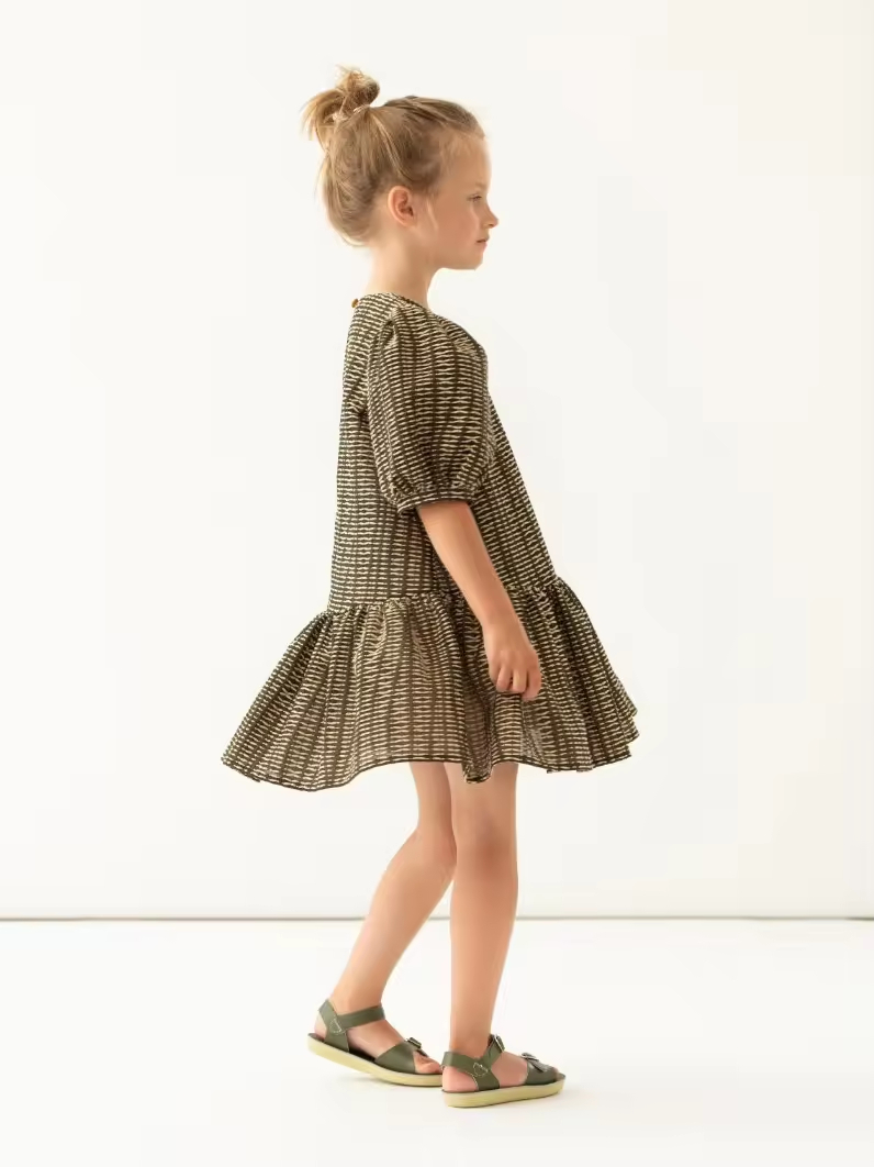 Customized Girls' Casual Summer Dress Latest Design with Fashion Print Crocheted Woven Fabric New Arrivals for Children