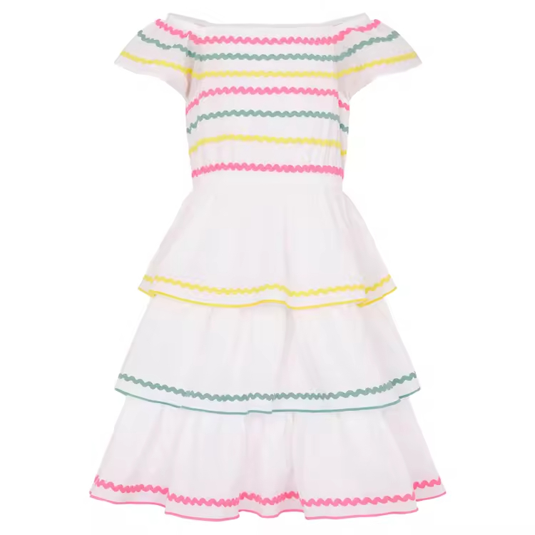 Guangzhou Wholesale Simple White Color Fashion Party Maxi Girl's Dresses off Shoulder Different Color Ribbon Baby Girl Dress