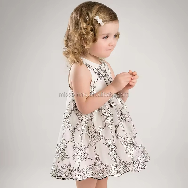 1.Girls Dress in White/black color, quality cotton fabric and a vintage style.