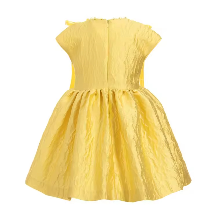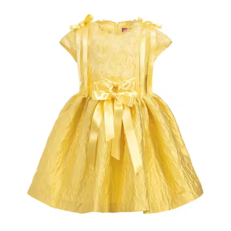 China Supplier Baby Frock Designs Fancy Baby Dress Boutique Girl Birthday Party Dress Yellow Princess Summer Dresses for Girls