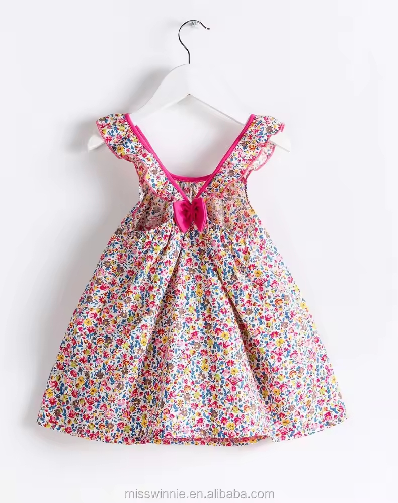 /OEM Lovely Girls Baby Dress Pictures pink Bowknot Latest Children Dress Designs Fancy