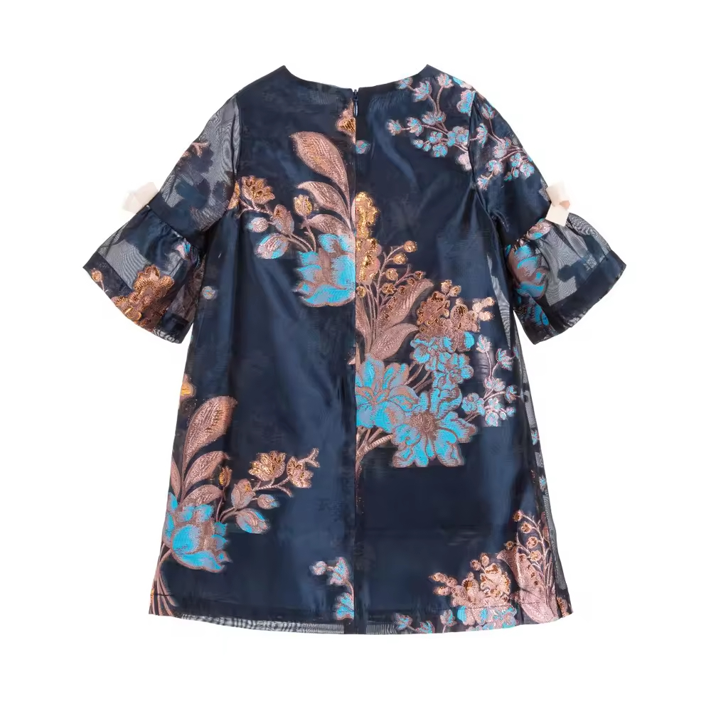 Children's Fashion Jacquard Lace Dress Chinese Style Girls Clothing Made of Satin Kid's Apparel