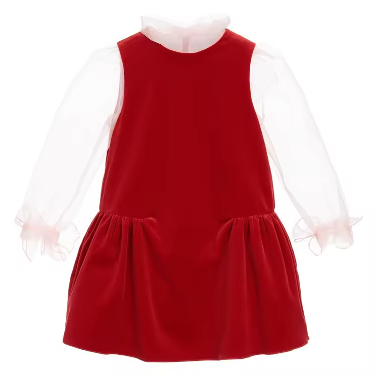 Spring Newest Style Girls Dress Long Mesh Sleeves Design European Style Guangzhou Wholesale