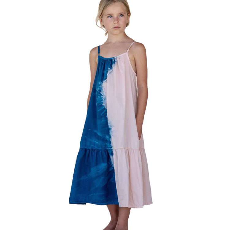 OEM & ODM Manufacturer Stylish Custom Summer Tie Dye Ruffled Collar Shirt and slip Dress Kids Clothes Matching Girls' Dresses